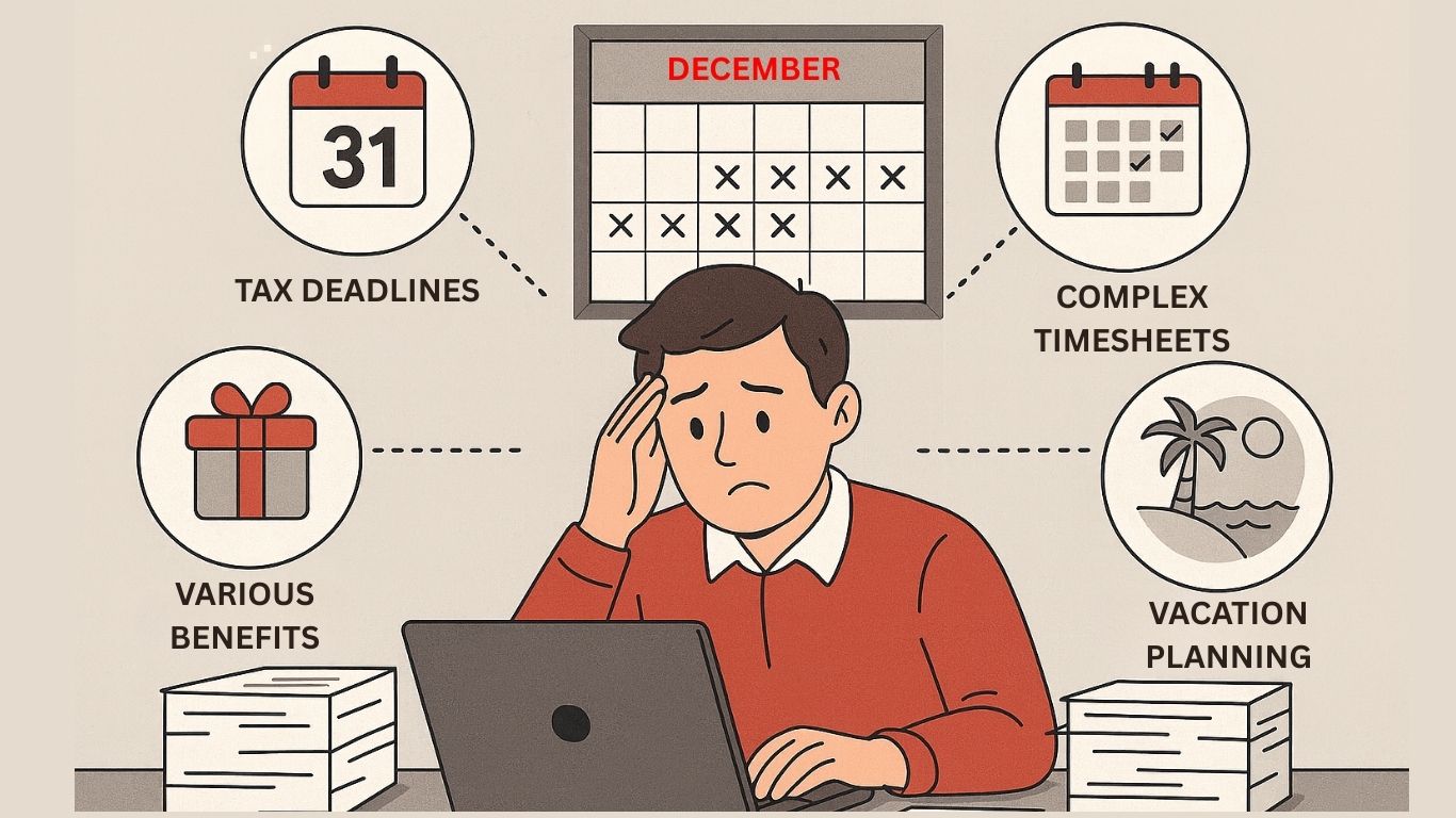 As the year draws to a close, companies face numerous challenges in managing payroll and HR activities: tight fiscal deadlines, complex timesheets, various benefits, and employee leave planning.