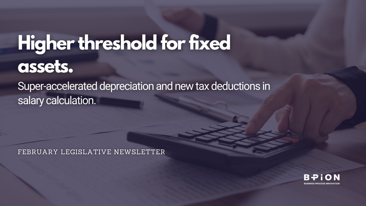 The February 2026 Newsletter includes the main legislative changes regarding global minimum taxation (Pillar 2), procedural and tax reporting updates, adjustments related to advance payments and VAT settlement, measures for the protection of wage claims, amendments concerning medical leave, as well as measures for administrative reorganization and investment stimulation.